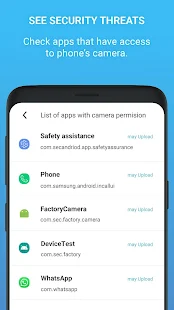Prevent spyware, malware, and viruses from taking unauthorized photos and video recordings on your phone. The application will protect your phone’s camera against privacy threats such as: Virus, surveillance, spyware and malware.