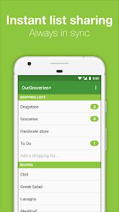 OurGroceries automatically maintains your family’s grocery list in sync with the latest changes on the phone or web browser of each family member. The most highly rated app in the grocery list! (4.7 stars in the Play Store as of May 2019) “Our grocery list is one of the best grocery list apps for Android.” * Joy of Android