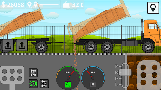 There are several vehicles with different specifications and load capacity in the game. Two types of equipment are available for each vehicle: dump and flat. In addition, a trailer can be joined in addition.