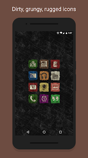 The Ruggy icon pack gives your device a grungy look. Details such as dust and cracks on each icon have been added manually to ensure that the grunge effect does not compromise the visibility and readability of the icons.